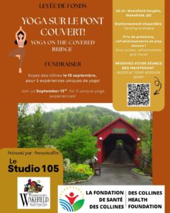 Notre tout premier événement de yoga sur le pont couvert a remporté un énorme succès, permettant de récolter 2 000 $ au profit de projets importants de santé et services sociaux de la fondation. Un grand merci au Studio 105, à tous les bénévoles et à tous les participants ! Restez à l’écoute pour l’événement Yoga sur le pont couvert de l’année prochaine !